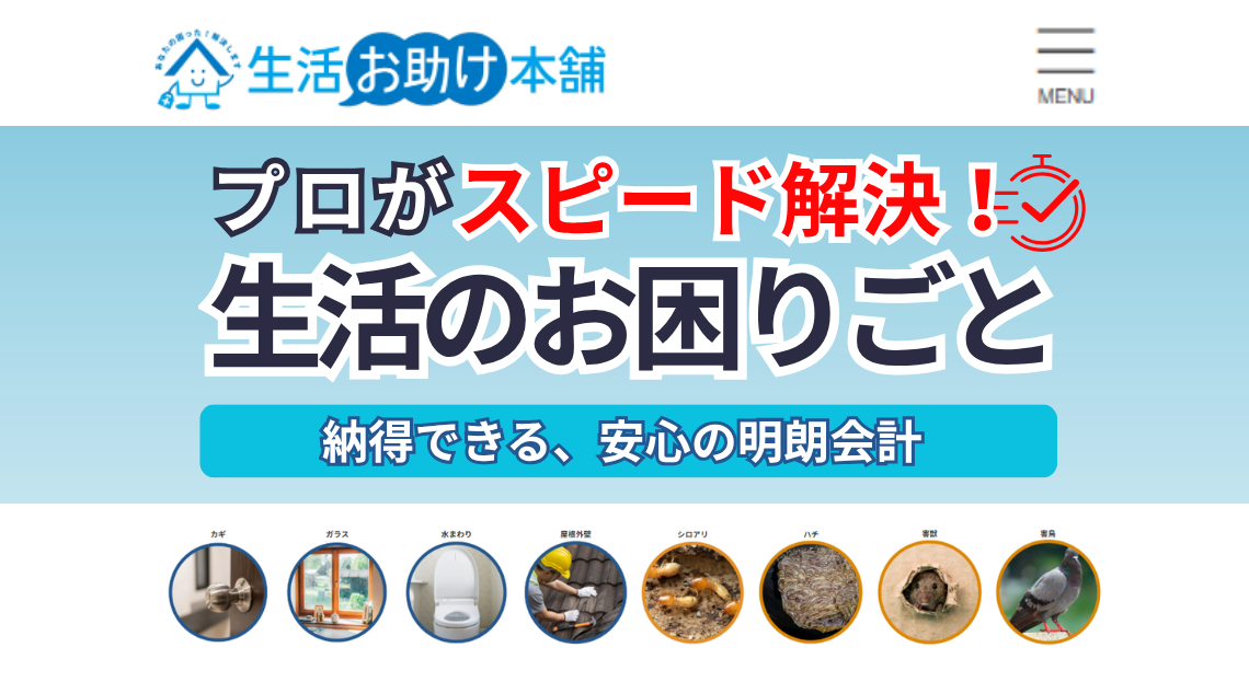 鍵・水道・害虫/害獣など、生活トラブル解決のプロを紹介する国内最大級のポータルサイトです。